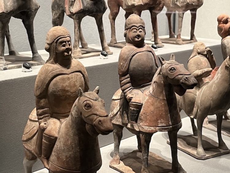 展厅现场,一组甲骑具装俑