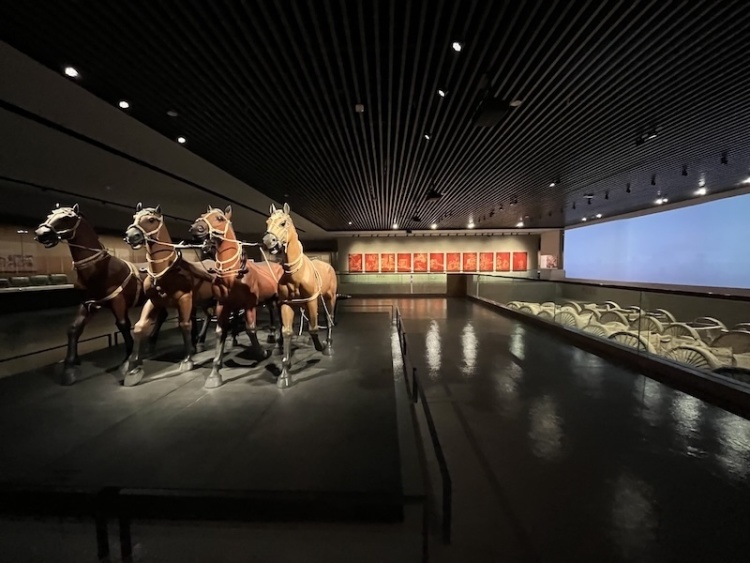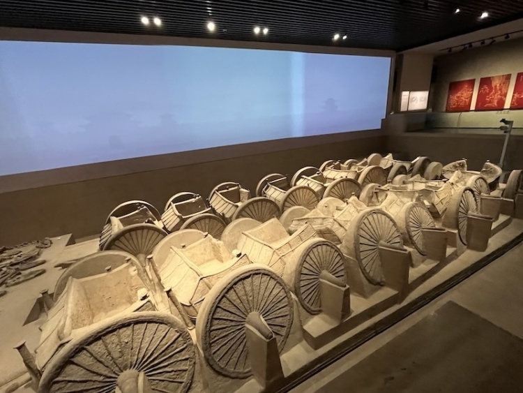 山西青铜博物馆展厅,赵卿墓车马坑中的车坑