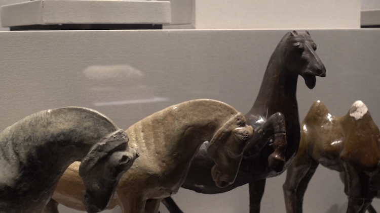 展厅现场,司马金龙墓出土的陶釉马