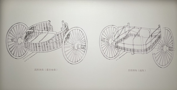 展板上呈现的赵卿墓圆舆车与方舆车露出图