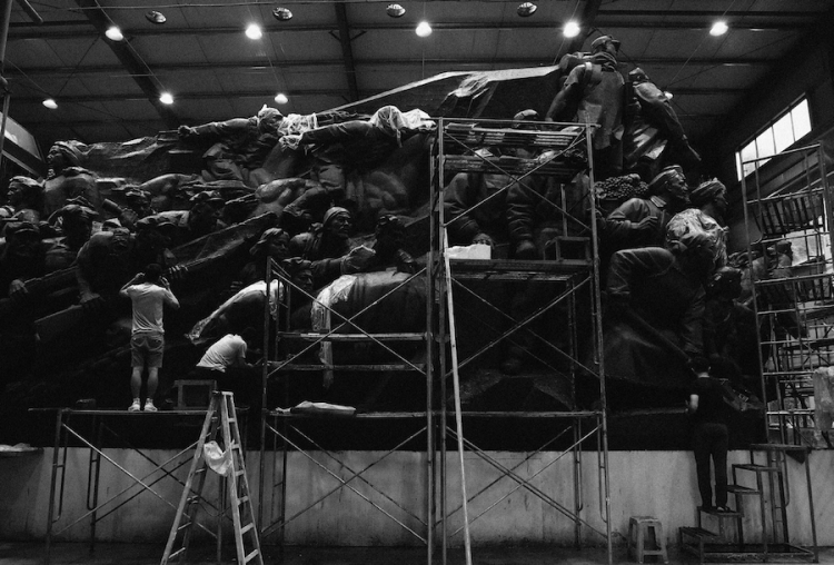 《攻坚》等大泥塑创作现场