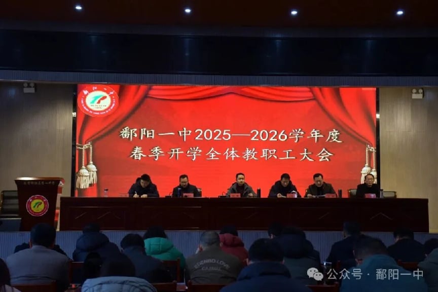 2月28日上昼,鄱阳一中召开2025—2026学年度第二学期开学教职工大会,整体教职工以裕如的精神情状皆聚一堂,共同开启提醒教学新征途。会议由该校党委委员、副校长肖鹏主理。