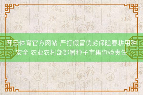 开云体育官方网站 严打假冒伪劣保险春耕用种安全 农业农村部部署种子市集查验责任
