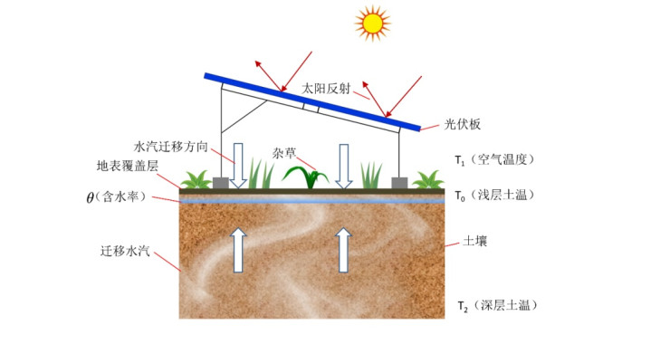 更令东说念主咋舌的是,“锅盖效应”还能让荒原“无水反绿”,解锁了中学地舆讲义里“光伏羊”的科学巧妙。戈壁滩正本寸草不生,架设光伏板后,板下却长满青草,成为羊群的自然牧场。这是因为光伏板激发了双向“锅盖效应”:春秋季节,地下水汽进取移动遇冷凝结,普及浅层泥土湿度;夏日,地表温度低、近大地空气温度高,热空气中的水汽遭受冷大地便凝结成水。再加上光伏板遮阳挡风,水分挥发大幅减少,泥土湿度远超草类滋长所需水分的临界值,荒原便悄然变绿。