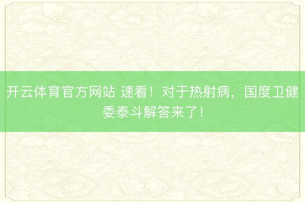 开云体育官方网站 速看!对于热射病,国度卫健委泰斗解答来了!