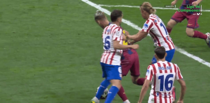 虎扑04月14日讯欧冠1/4决赛次回合,巴萨客场对阵马竞的比赛中上半场出现争议判罚。比赛全体节拍热烈,上半场两边共打入3球,其中第40分钟的一次判罚激发巴萨方面强烈不悦。