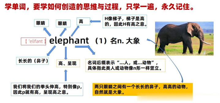 当寰球知谈英语单词的发音时有一套发音机制在相沿着后,寰球信赖特地意思意思,英语单词是若何来的!信赖特地意思意思“大象”这个动物的单词为什么写成“elephant”这样?寰球开动大脑随着我的教授进行掀开我方的造词逻辑,去感受一朝掌抓了单词创造念念维与逻辑后秒记单词的震荡!