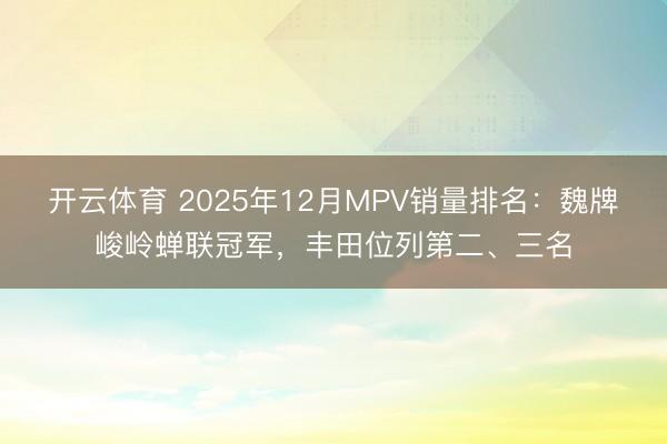 开云体育 2025年12月MPV销量排名:魏牌峻岭蝉联冠军,丰田位列第二、三名