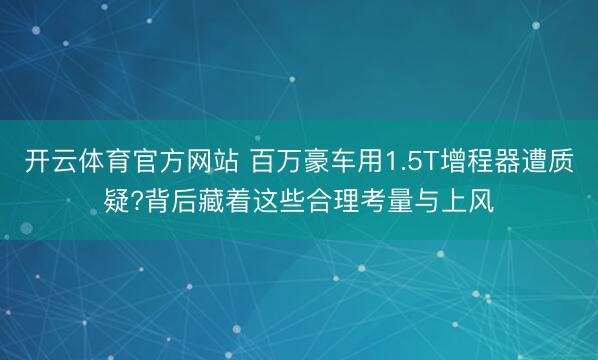 开云体育官方网站 百万豪车用1.5T增程器遭质疑?背后藏着这些合理考量与上风