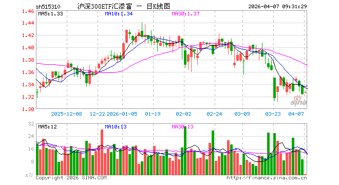 4月7日,沪深300ETF汇添富(515310)开盘涨0.15%,报1.326元。沪深300ETF汇添富(515310)重仓股方面,宁德期间开盘涨0.91%,贵州茅台涨0.00%,抢庄牛牛app中国吉利涨0.09%,中际旭创涨0.24%,紫金矿业跌0.33%,招商银行跌0.03%,开云体育新易盛跌1.16%,好意思的集团涨0.00%,兴业银行涨0.05%,长江电力涨0.04%。