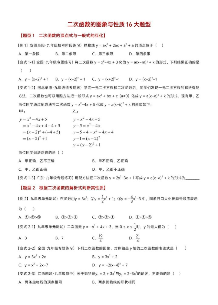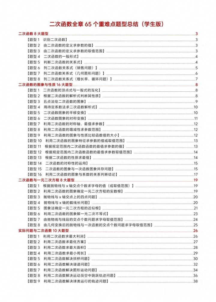 开云sports 初中数学二次函数65个重难点题型, 融会详