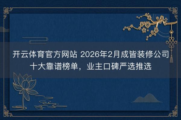 开云体育官方网站 2026年2月成皆装修公司十大靠谱榜单,业主口碑严选推选