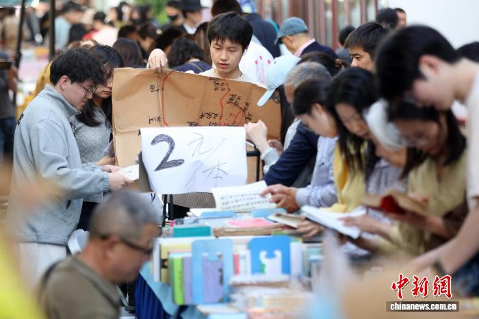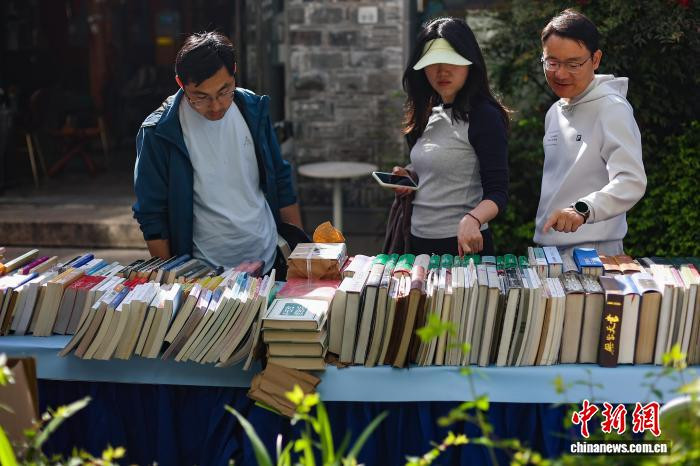 4月19日,开云体育官方网站江苏南京,市民在金陵古书商场上淘书。日前,以“古书新知书香南京”为主题的金陵古书商场在城南古巷熙南里街区开启,遮掩古古书市、古籍科普、以旧换新、非遗工坊等七大类别,一站式得志民众淘书、研学、互动、滥用等多种需求。中新社记者泱波摄