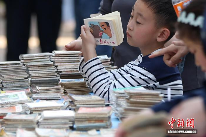 4月19日,江苏南京,小一又友在金陵古书商场上有瞻念看庸东谈主书。日前,以“古书新知书香南京”为主题的金陵古书商场在城南古巷熙南里街区开启,遮掩古古书市、古籍科普、以旧换新、非遗工坊等七大类别,一站式得志民众淘书、研学、互动、滥用等多种需求。中新社记者泱波摄