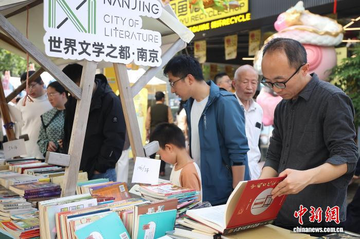 4月19日,江苏南京,市民在金陵古书商场上淘书。日前,以“古书新知书香南京”为主题的金陵古书商场在城南古巷熙南里街区开启,遮掩古古书市、古籍科普、以旧换新、非遗工坊等七大类别,一站式得志民众淘书、研学、互动、滥用等多种需求。中新社记者泱波摄