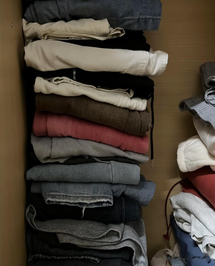 每天你把家内部的穿着都折叠收纳在衣柜中,全部都折叠后发现,这看着都很好意思不雅。
