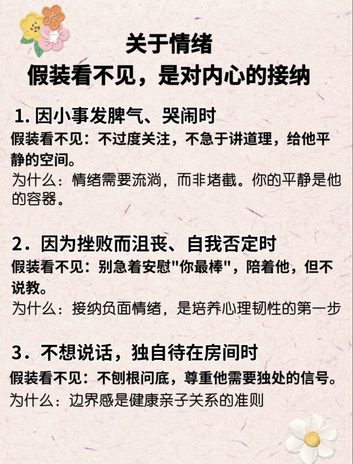 孩子因小事发性情、哭闹时,别过度眷注,也别急于讲意旨。给他一个坦然的空间,让情怀当然流淌。你的坦然会成为他的容器,匡助他平复情怀。
